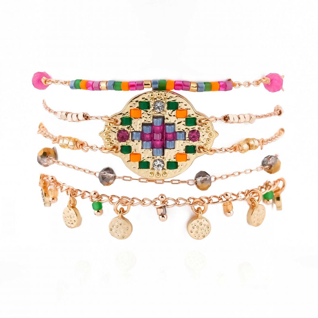Matière: Gold plated brass 14K, glass beads, CZ crystal, magnetic clasp