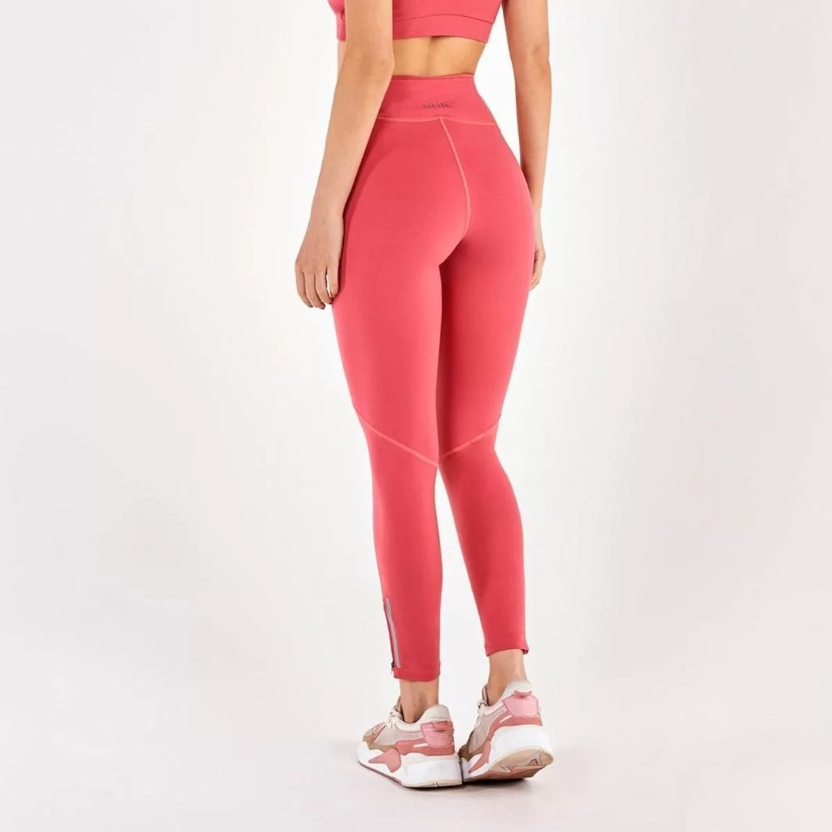 Model Back: Alto Giro Fitness Bas Legging Supplex Ziper Barra Coral