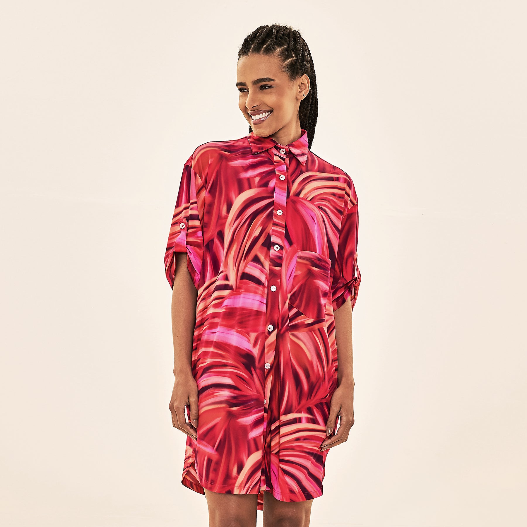 Model Front: Uv Line Chemise Shirtdress Copacabana Upf50+